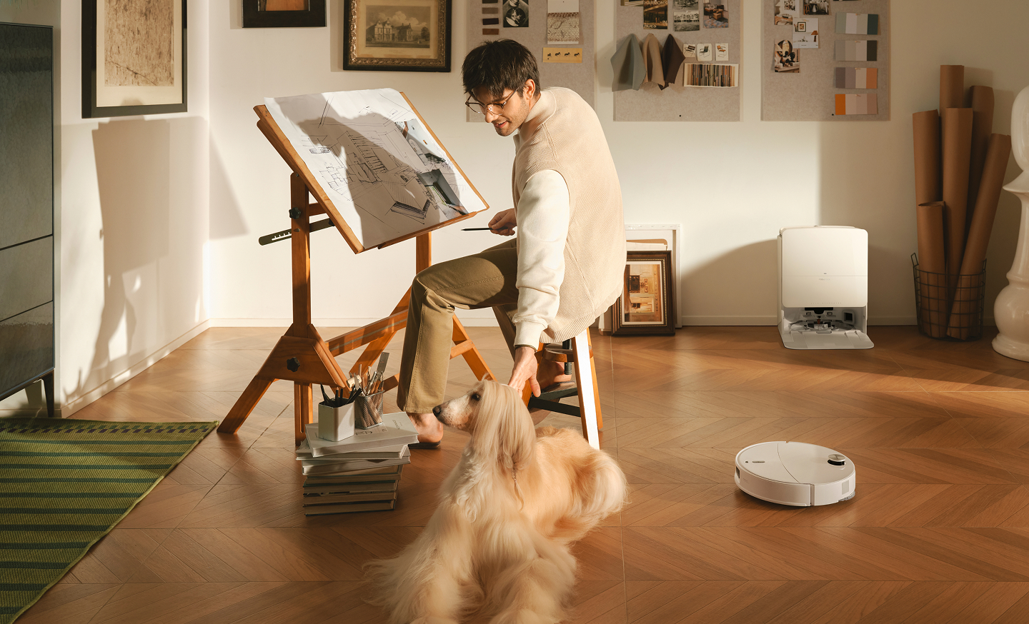 Wilt u tapijten grondig reinigen of ze helemaal vermijden? Eén tik is voldoende. Uw robot past zich aan: sterkere zuigkracht bij het reinigen van tapijten met de dweil omhoog, of nauwkeurige randreiniging om vloerkleden over te slaan en droog te houden*. U hebt de controle over elke kamer en elk vloerkleed, elke keer weer.