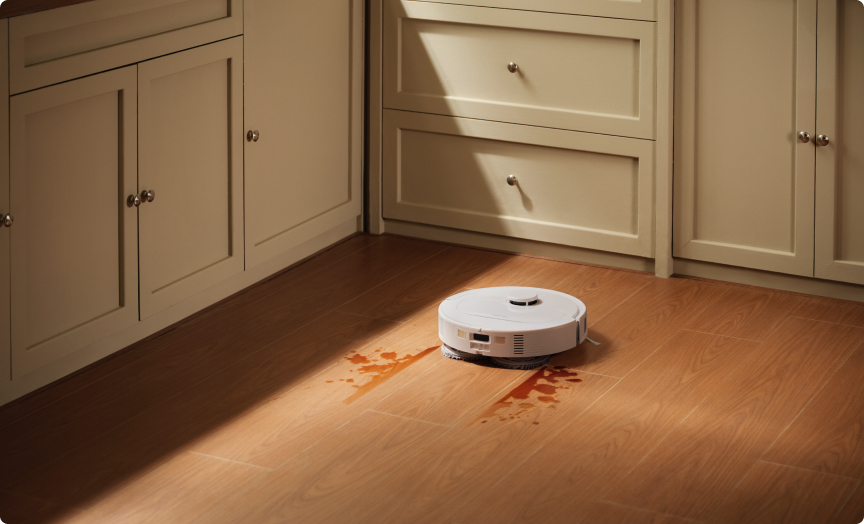 De robot is voorzien van dubbele optilbare, roterende moppen om hardnekkige vlekken op harde vloeren aan te pakken. De moppen worden automatisch opgetild wanneer tapijten worden gedetecteerd. Zo blijft het tapijt droog voor een naadloze reiniging.