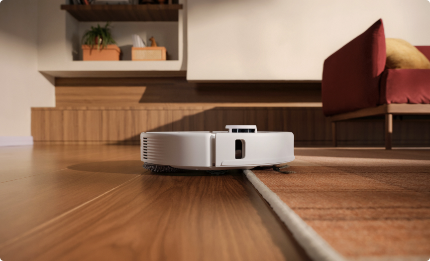 Wilt u tapijten grondig reinigen of ze juist helemaal overslaan? Eén tik is voldoende. Uw robot past zich automatisch aan: hogere zuigkracht bij het reinigen van tapijten met de dweil omhoog, of nauwkeurige randreiniging om vloerkleden te vermijden zodat ze droog blijven*. U behoudt de controle over elke kamer en elk vloerkleed, elke keer weer.