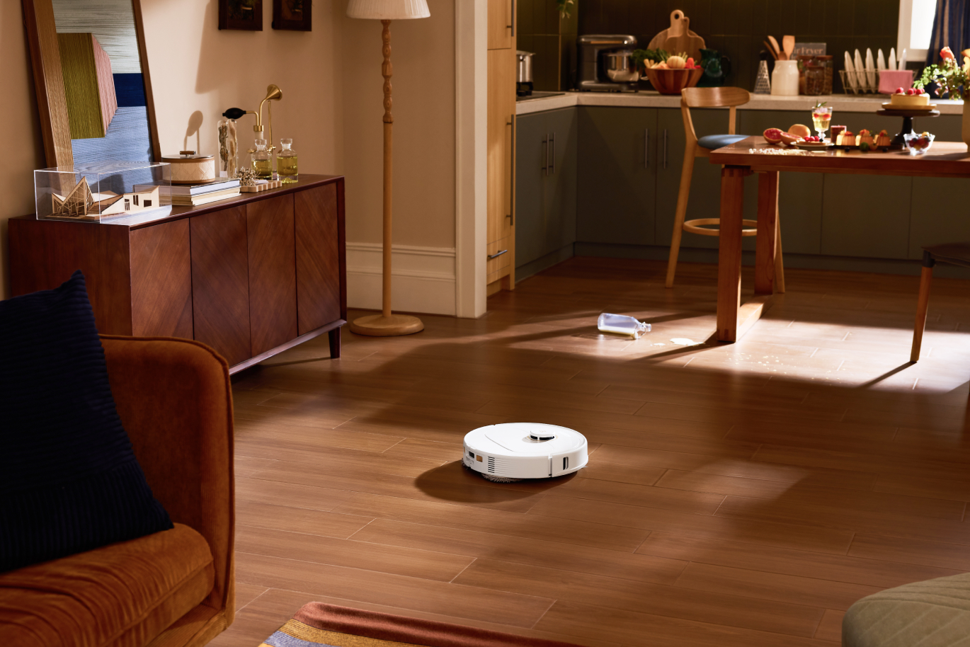 Aangedreven door gestructureerd licht is de robot zeer efficiënt in het herkennen van obstakels. Zelfs in een rommelige kamer met voorwerpen verspreid over de vloer kan het moeiteloos obstakels detecteren en eromheen navigeren.