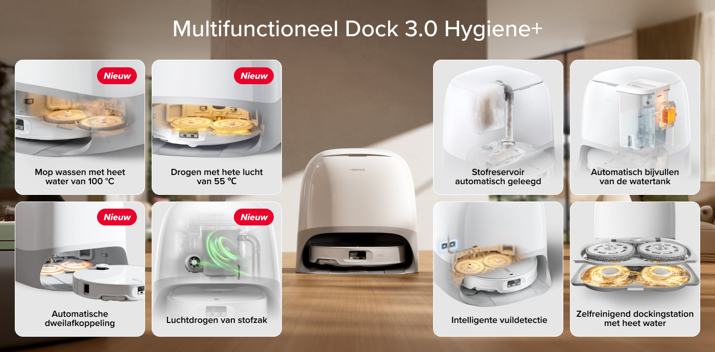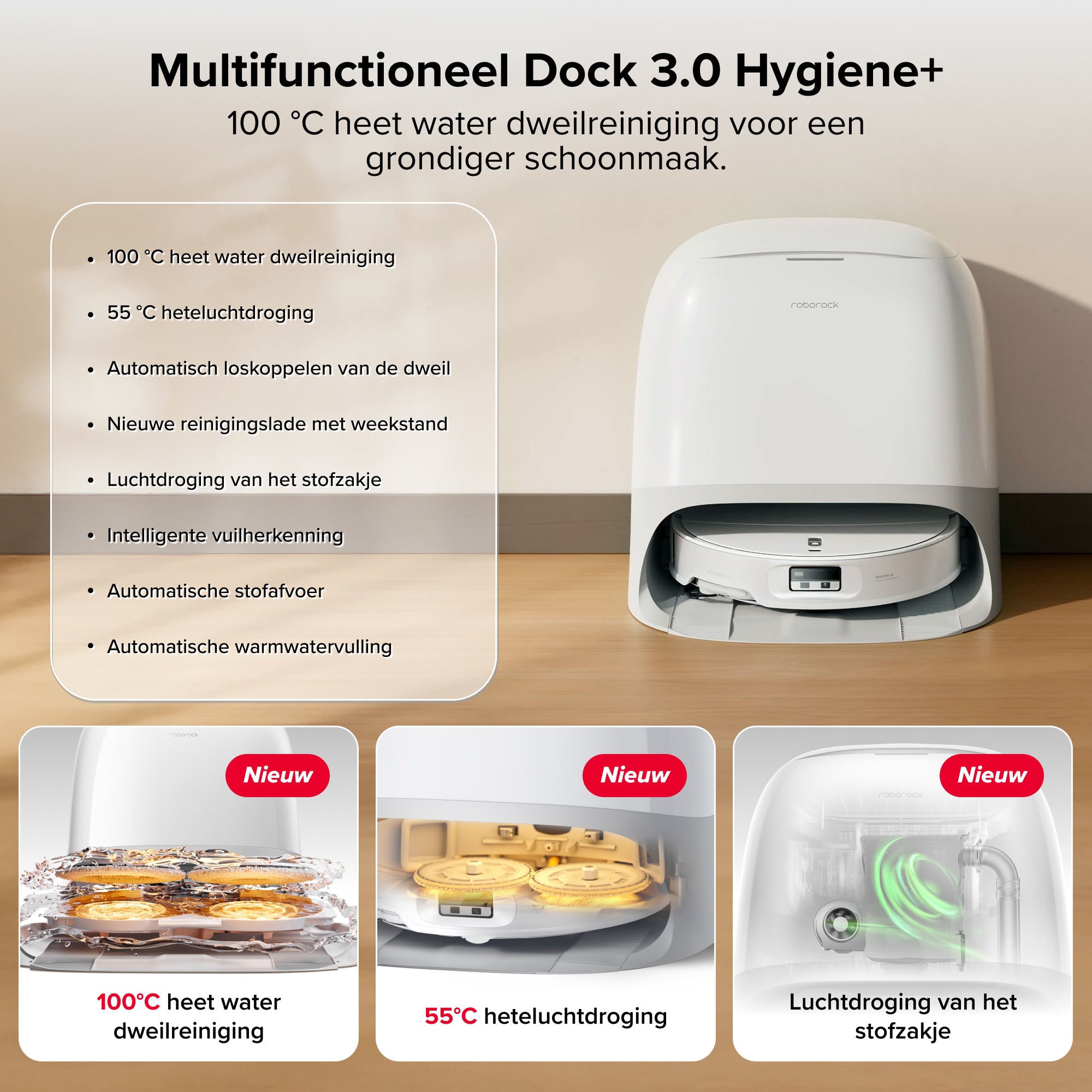 Ons Multifunctionele Dock 3.0 Hygiene+ maakt effectief hardnekkig vuil, voedselresten en vetvlekken los van dweilpads. Elke wasbeurt zorgt voor een schone dweil en een grondige, hygiënische vloerreiniging.