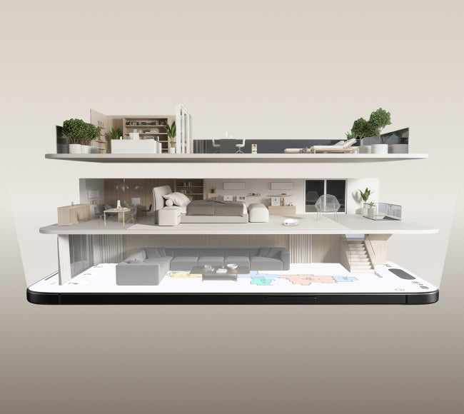 Maak en bewaar automatisch nauwkeurige plattegronden voor maximaal 3 verdiepingen. Zet gewoon de robot neer, hij herkent elke verdieping en maakt zelf een plattegrond