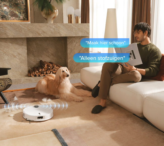 Zeg eenvoudig 'Hello Rocky' om het schoonmaken te starten of instellingen aan te passen, u hoeft letterlijk geen vinger uit te steken. De intelligente spraakassistent staat altijd klaar om te helpen, zelfs zonder internetverbinding.