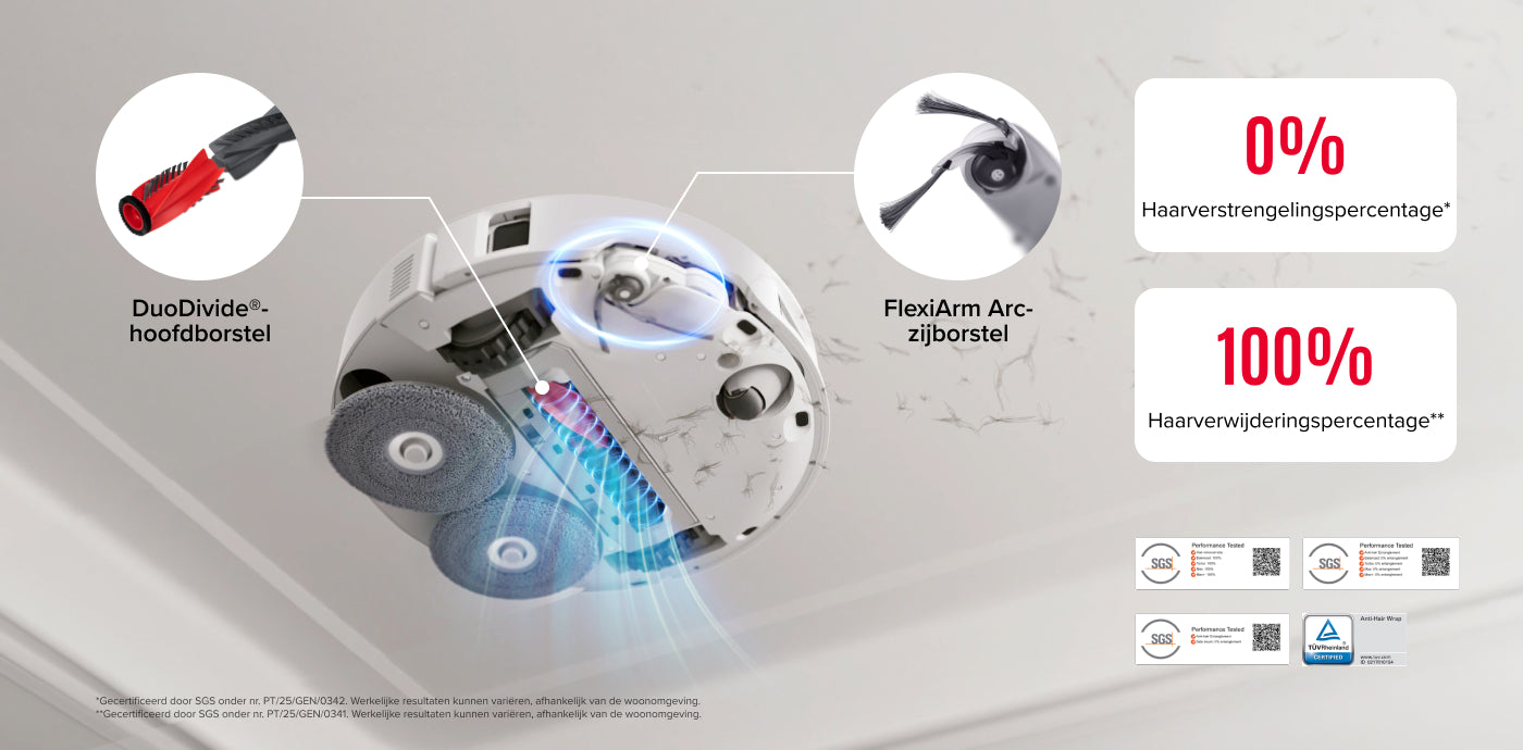 6.Gebaseerd op tests, uitgevoerd en gecertificeerd door SGS en TÜV SÜD. De werkelijke resultaten kunnen variëren, afhankelijk van de woonomgeving. Certificerings-ID's: nr. PT/25/GEN/0370, nr. PT/25/GEN/0368, nr. Z2GCN1238210008, nr. Z20CN123820009.