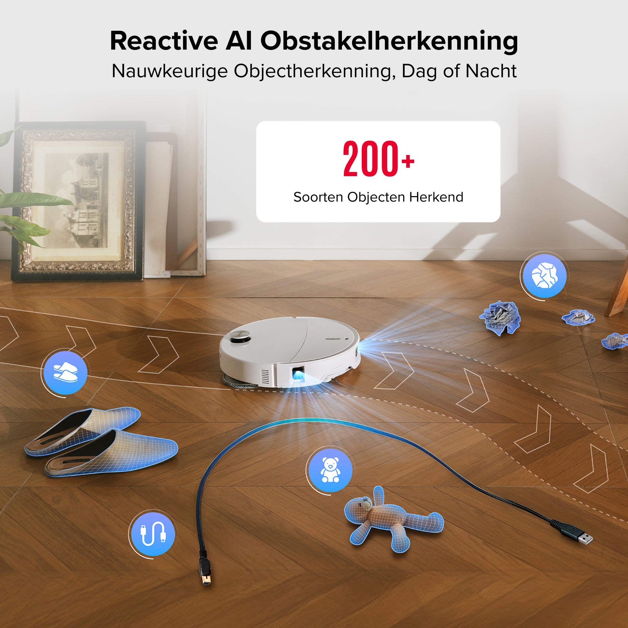 De robot maakt gebruik van gestructureerd licht en een RGB-camera om meer dan 200 soorten veelvoorkomende obstakels te detecteren en te ontwijken: van in de war geraakte kabels tot 'ongelukjes' van huisdieren, zowel overdag als 's nachts.