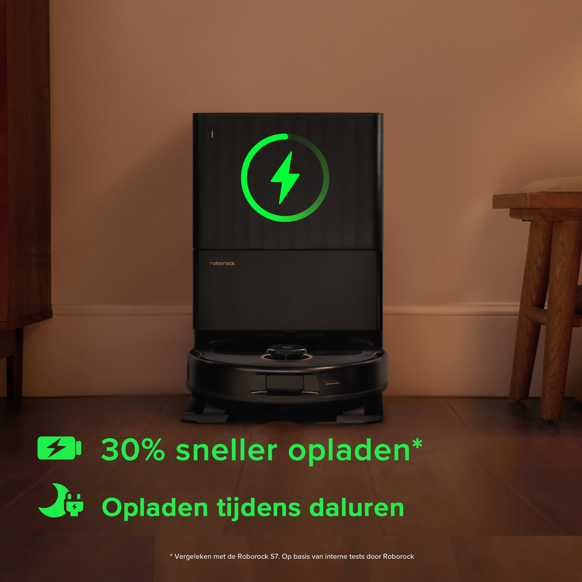 Hervat het reinigingsproces snel dankzij 30% sneller opladen dan voorheen, en laad op tijdens daluren om energie te besparen.