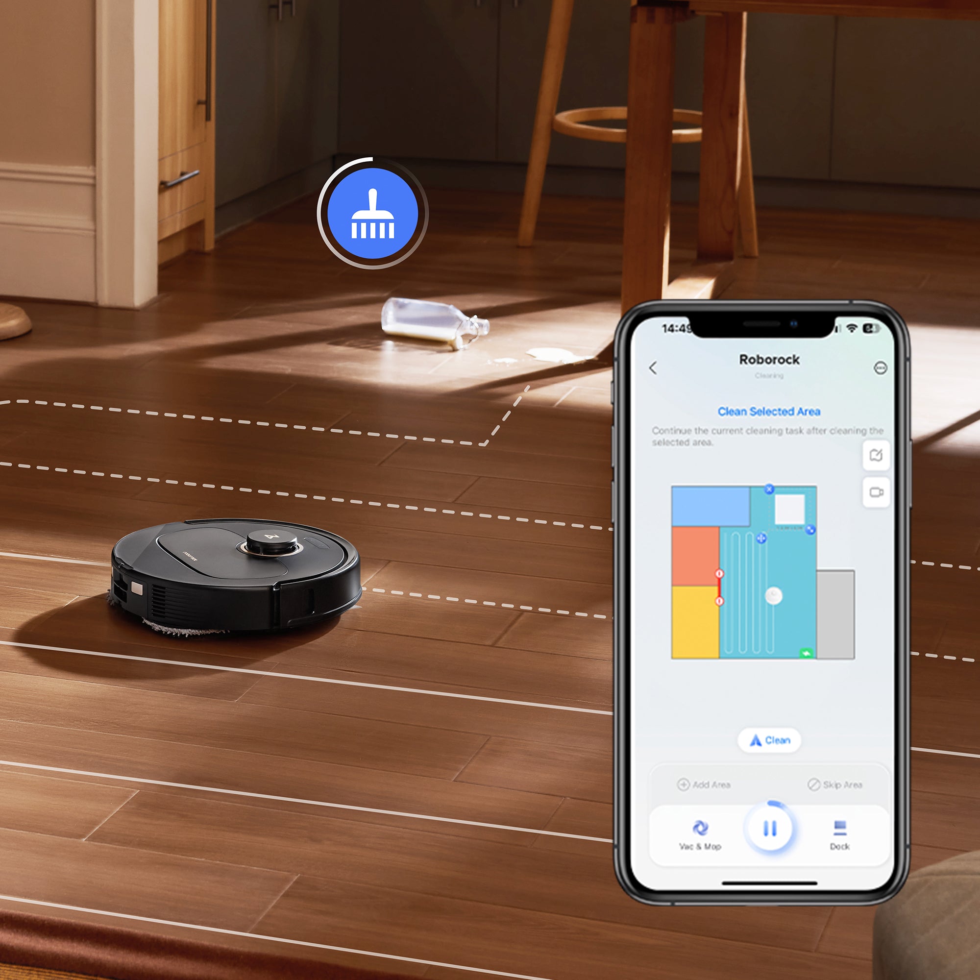 De functie voor tijdelijke reiniging is een uitkomst voor onverwachte vlekken. Het kan snel de rommel opruimen zonder uw huidige schoonmaakschema te verstoren. Daarnaast stelt de functie voor tijdelijk overslaan u in staat om tijdelijk specifieke gebieden over te slaan die u op dat moment niet wilt laten reinigen.