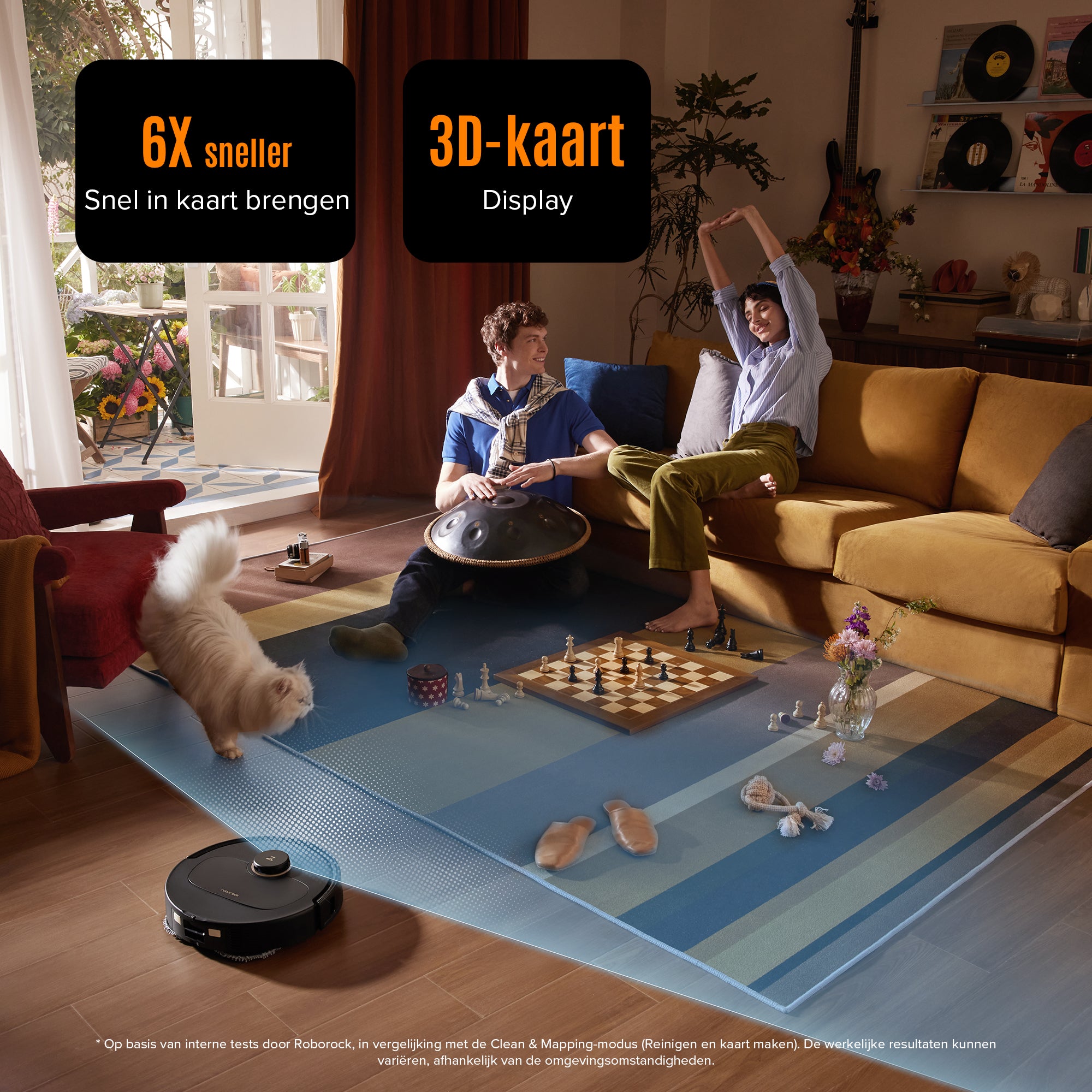 * Op basis van interne tests door Roborock in de modus Max+ met een volle accu, overeenkomstig de lEC 62885-2:2021/5.11-standaarden.
