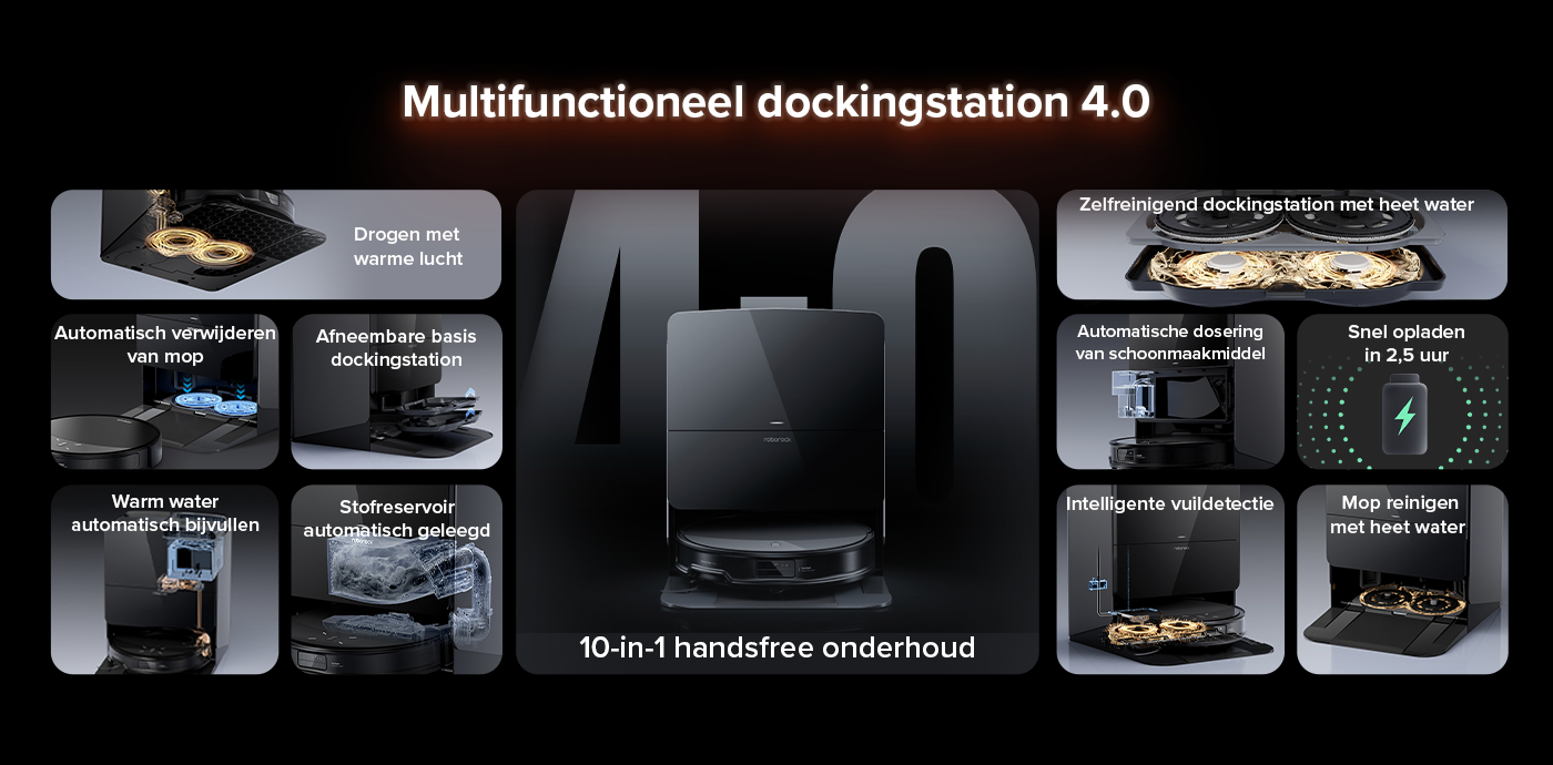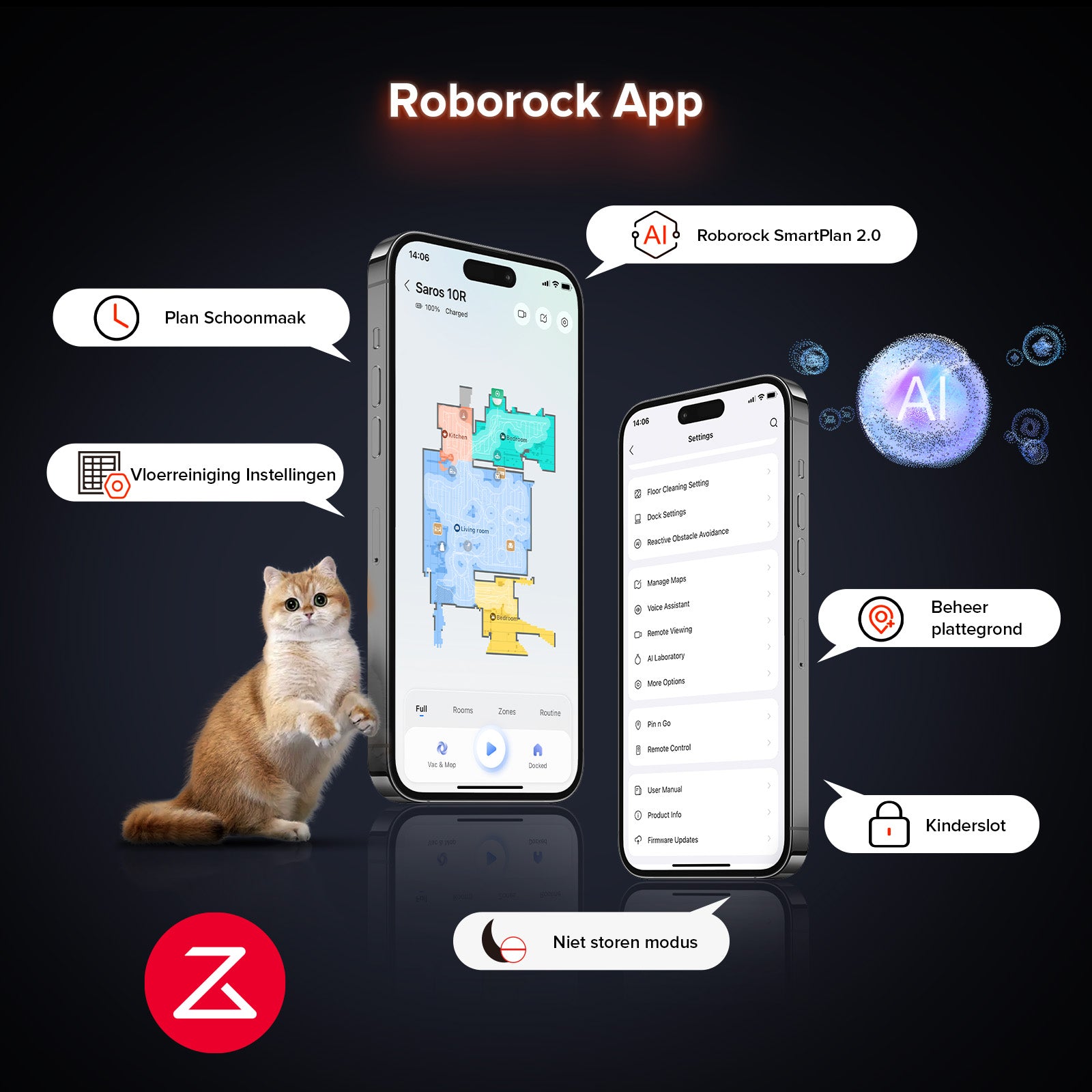 Roborock Saros 10R robotstofzuiger met dweilfunctie en afneembare dweil, 7,98 cm ultraslank ontwerp, StarSight System 2.0, Zero-Tangle System - Saros 10R Set