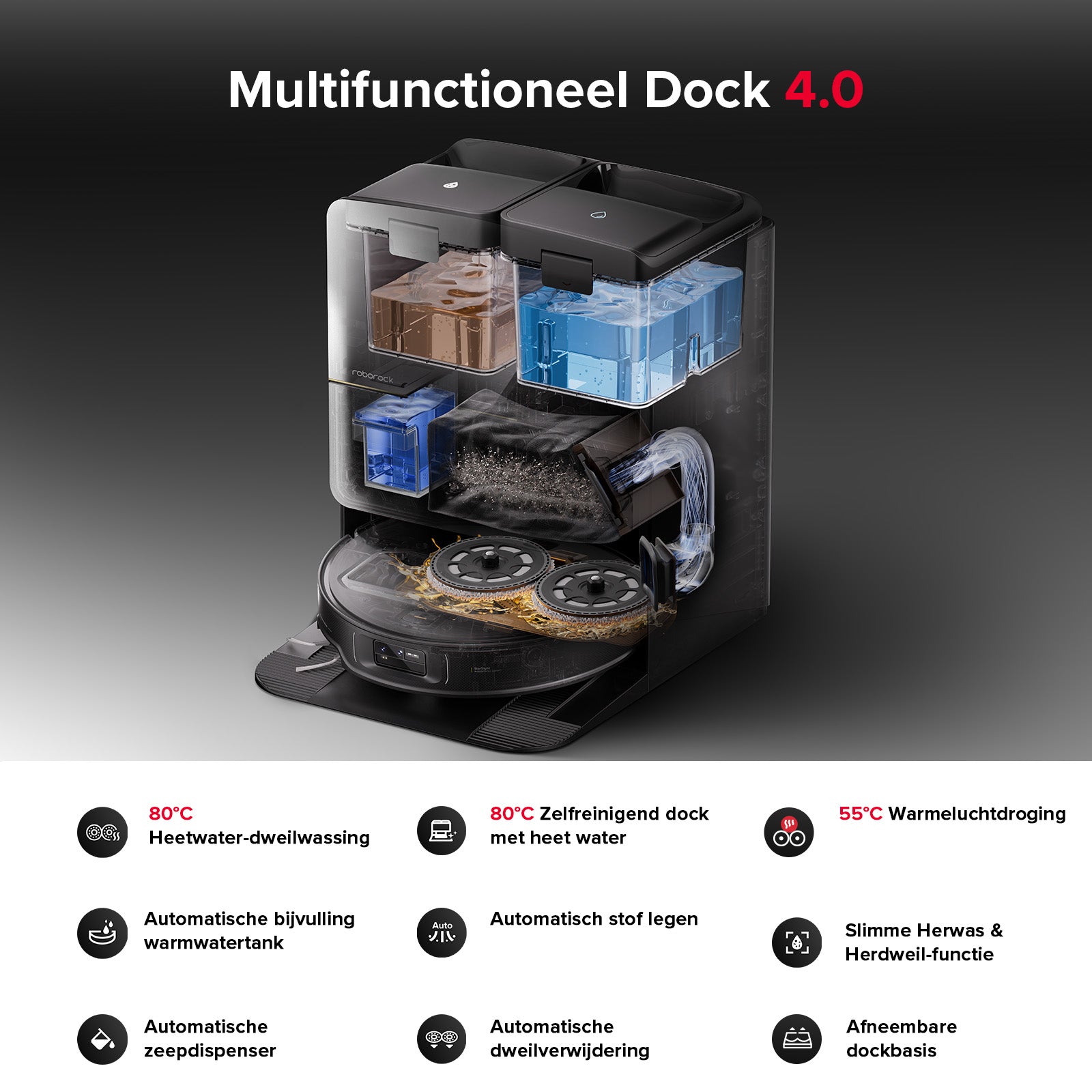 • Zelfreinigend dockingstation met heet water van 80 °C